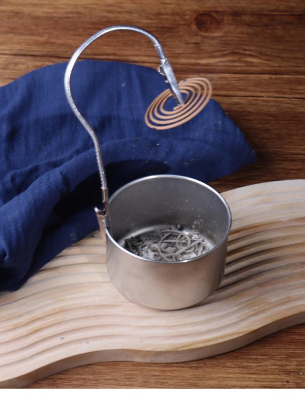 蚊取り線香 ホルダー 家庭用 屋外 室内 渦巻き線香 盤香 香炉 お香立て 灰受け皿 灰飛散防止 クリップ式 ワニ口クリップ ステンレス製 ブリキ製 サンダルウッド インセンス コンパクト