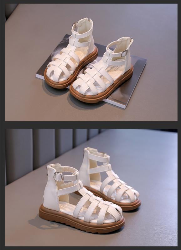 サンダル キッズ ガールズ ジュニア ローマ プリンセス つま先保護 おしゃれ 合成皮革 ゴム底 履きやすい 滑り止め クッション性 普段使い 通学 お出かけ ベージュ ブラック