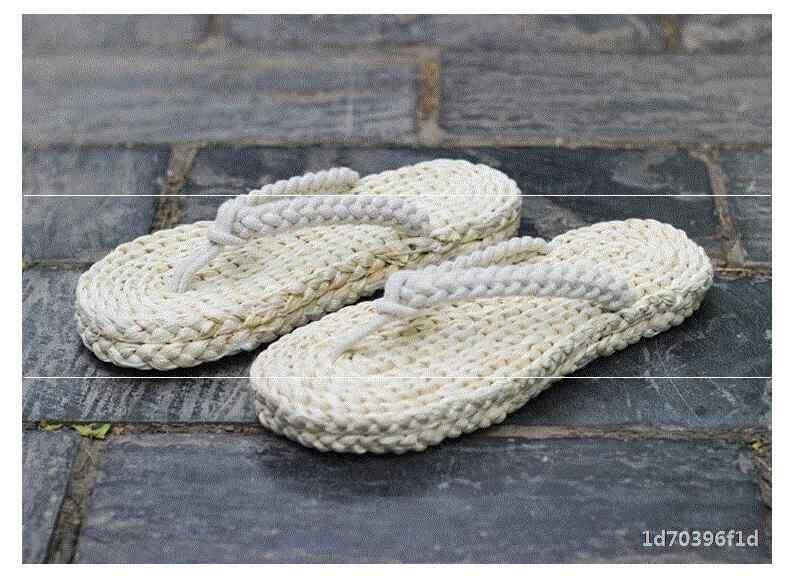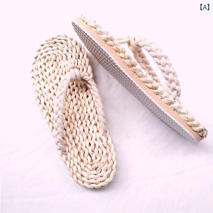 サンダル 男女兼用 カップル 和風 レトロ 草編み トウモロコシ皮 通気性 快適 草履 ビーチサンダル トング スリッパ ルームシューズ 室内履き 部屋履き 亜麻アッパー EVAソール カジュアル