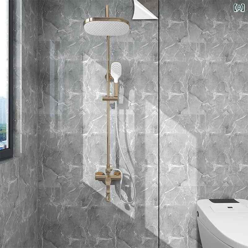 ウォールステッカー トイレ バスルーム 洗面所 浴室 防水 防湿 タイル調 壁紙シート 自己粘着 リフォーム 模様替え PVC素材 モダン シンプル マヤグレー ジャズホワイト 貼り付け簡単 賃貸OK