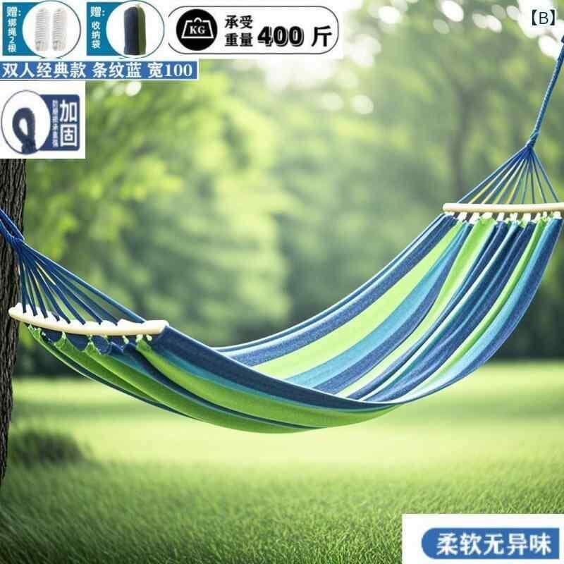 ハンモック 大人用 子供用 アウトドア キャンプ 屋外 庭 レジャー ポータブル 横転防止 転倒防止 軽量 持ち運び便利 コンパクト 帆布製 キャンバス生地 高耐荷重 頑丈 昼寝 リラックス 通気性 2人用