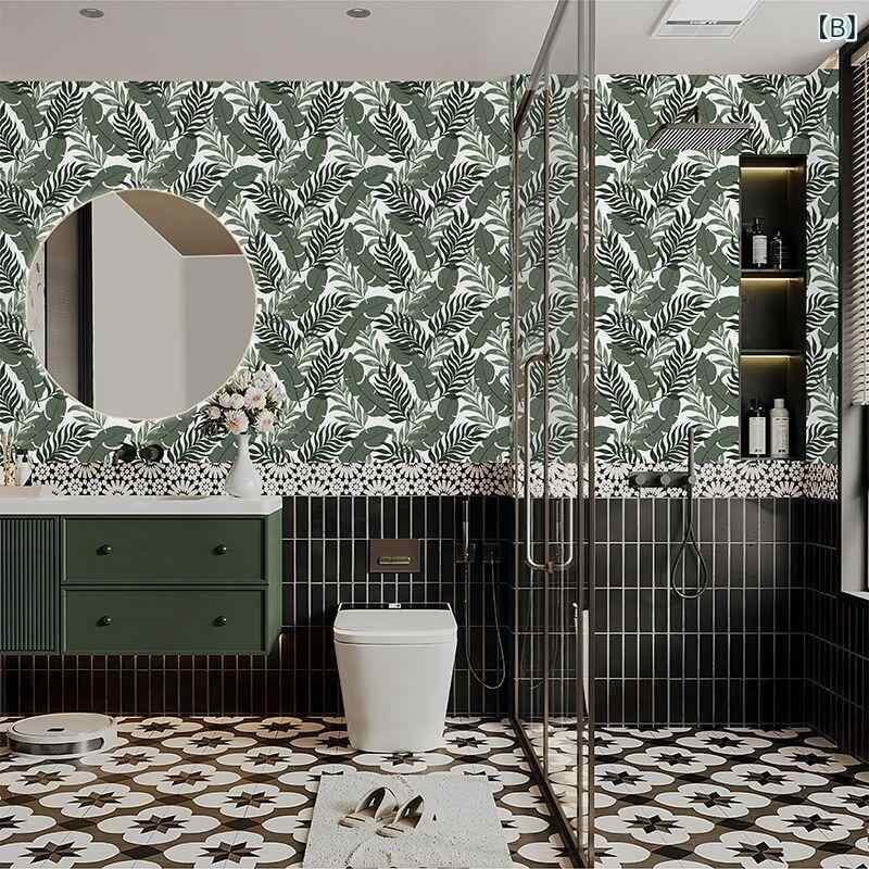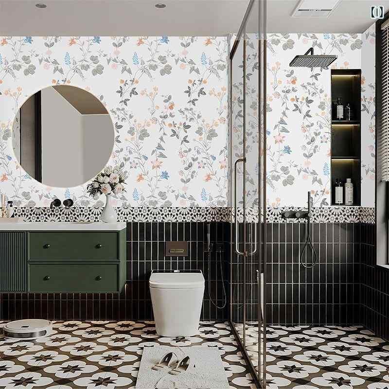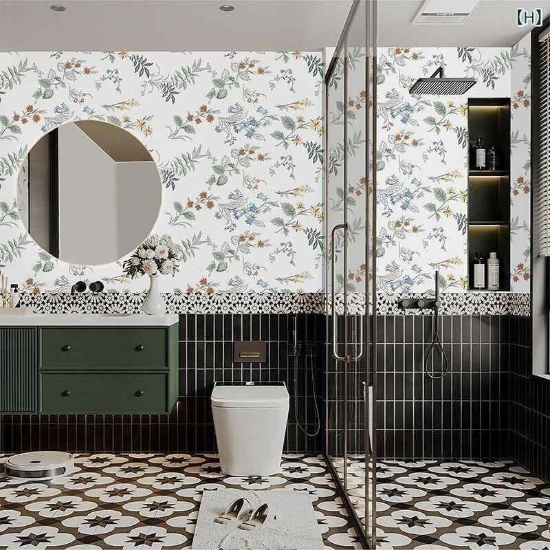 壁紙シール 防水 自己粘着 貼るだけ 簡単DIY キッチン トイレ バスルーム 水回り タイルシート 傷隠し 汚れ隠し 目隠し アルミホイル 花柄 植物柄 ボタニカル モダンインテリア