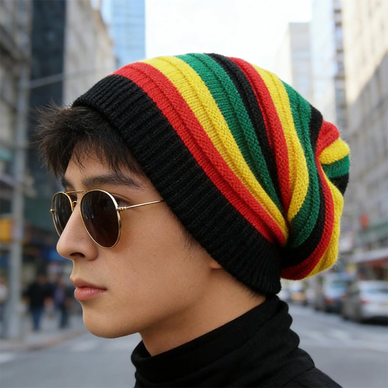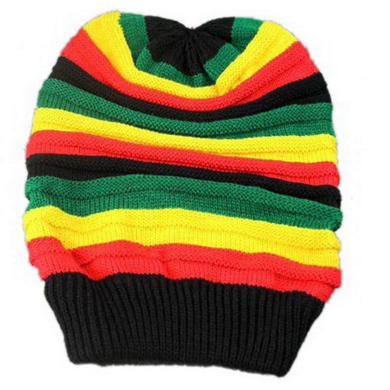 ニット帽 ビーニー帽 男女兼用 ユニセックス 秋冬 保温 防風 カラフル ストライプ 虹色 レゲエ ヒップホップ ストリート 個性的 SNS映え 毛糸 つばなし ブロック柄