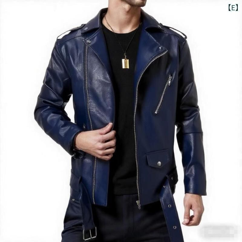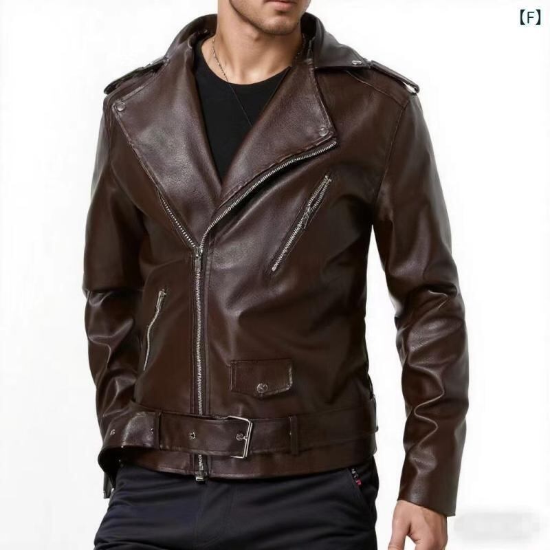 PUレザー ジャケット メンズ バイクスタイル ツーリング 旅行 ミドル丈 スリムフィット 韓国風 襟付き ジッパー フラップポケット 肩章付き エンボス加工 秋冬向け ブラック ホワイト ブラウン