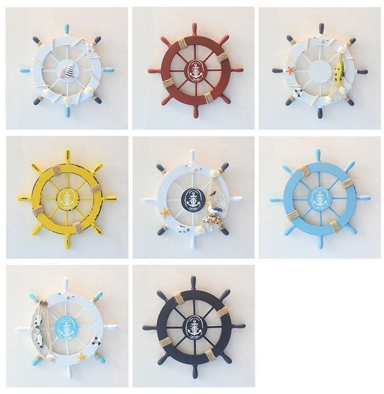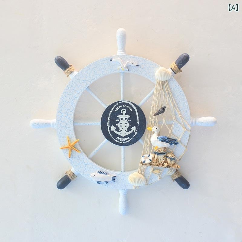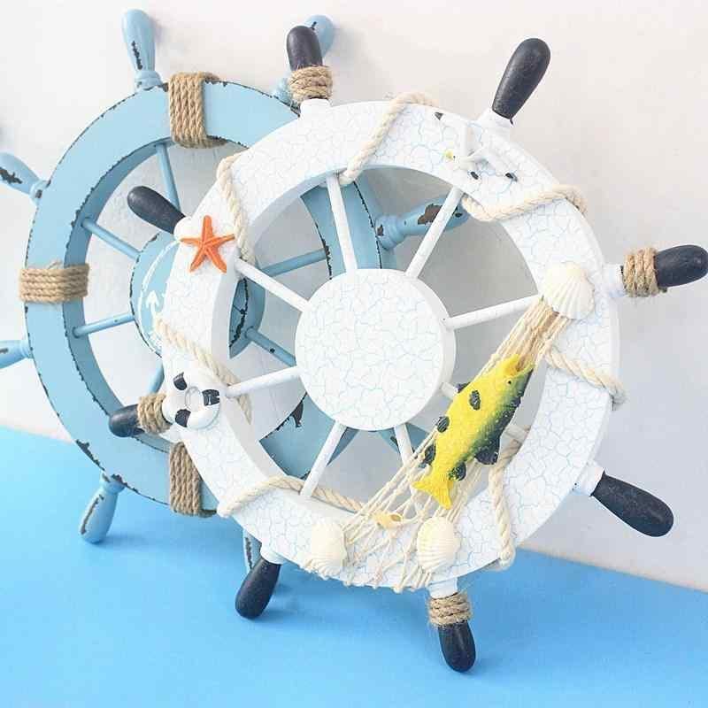 ウォールデコレーション 地中海スタイル 木製 船舵 壁掛け飾り 28cm 操舵輪 置物 オブジェ インテリア雑貨 おしゃれ マリンテイスト リビング 玄関 ディスプレイ ウッドクラフト 工芸品