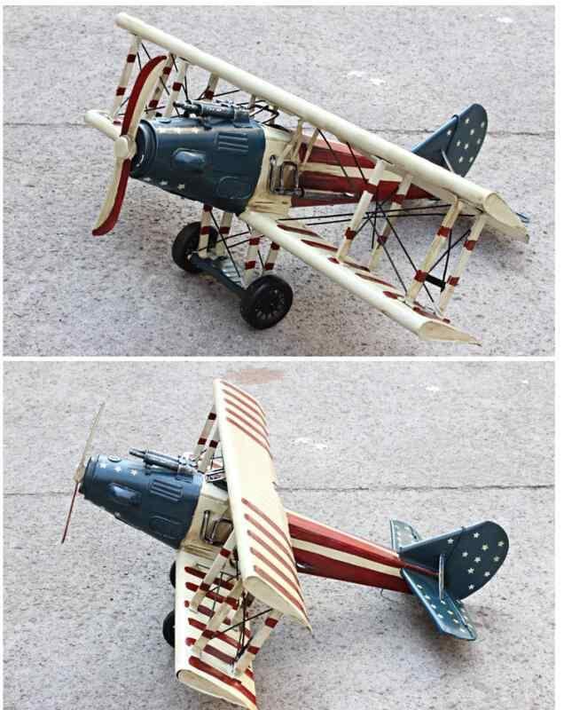 飛行機模型 男の子向け レトロ ヴィンテージ アメリカン ハンドメイド ブリキ 鉄製 戦闘機 プロペラ機 インテリア オブジェ ブルー コレクション ディスプレイ