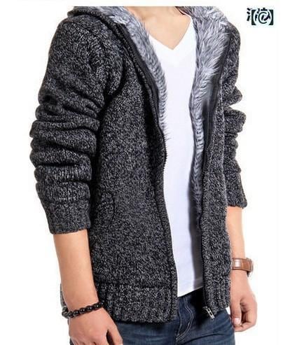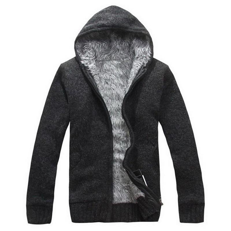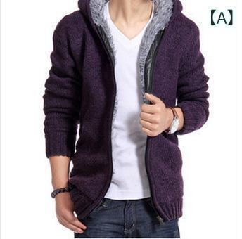 ニットカーディガン メンズ 裏起毛 厚手 防寒 フード付き カジュアル アウター 男性用 冬服 ミドル丈 羽織り あったか トップス ウール混 コットン混 防風 普段使い タウンユース