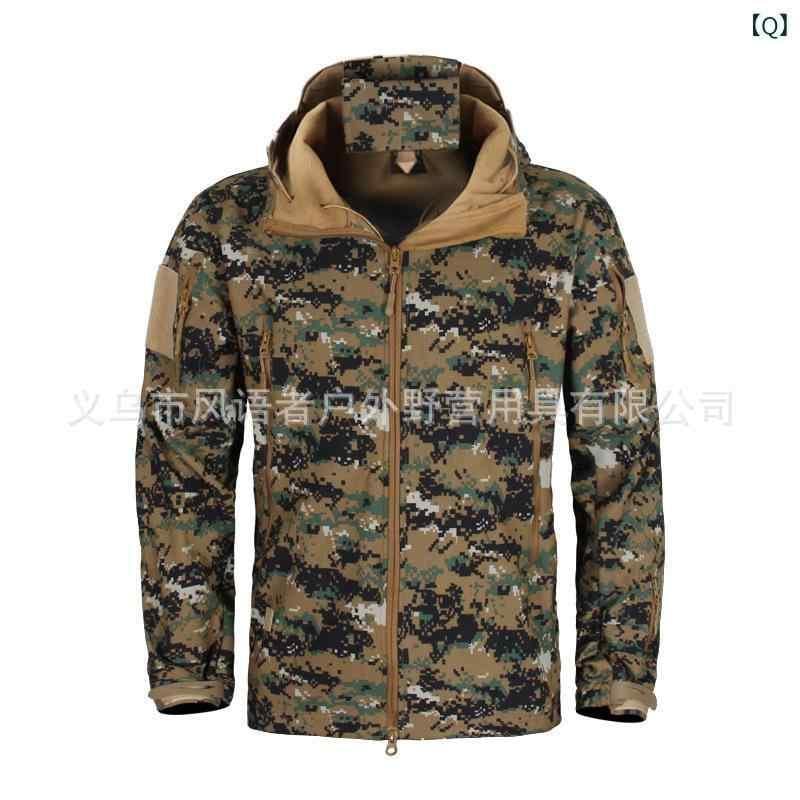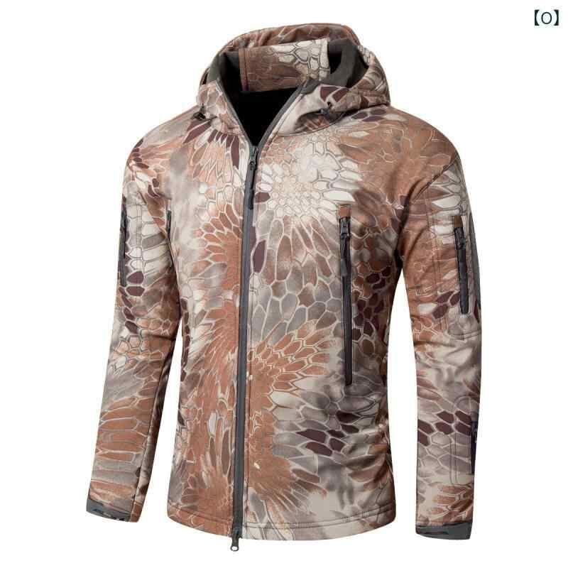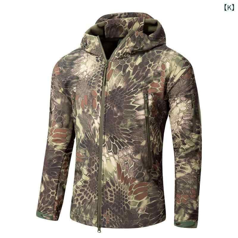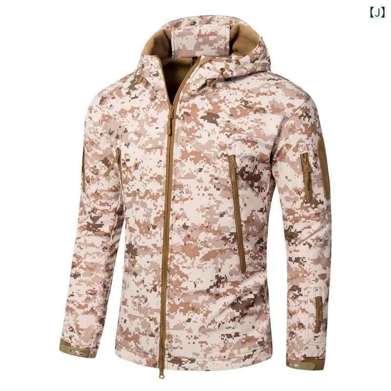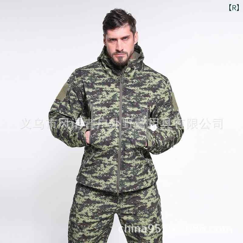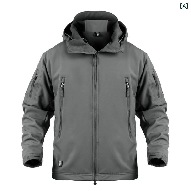ジャケット メンズ 男性用 アウターウェア アウトドア キャンプ 登山 ミリタリー ソフトシェル シャークスキン フード付き スタンドカラー 防水 防風 保温性 耐摩耗 防汚 高機能 裏起毛 厚手 秋