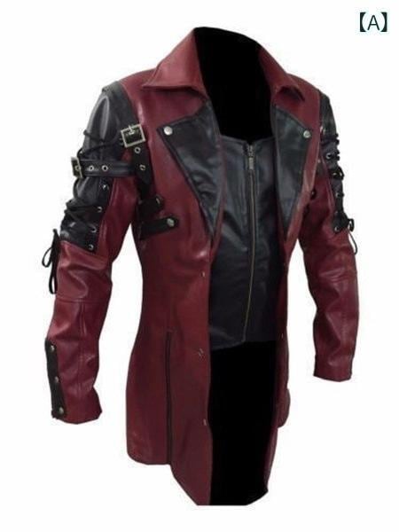 レザージャケット メンズ PUレザー 革ジャン 欧米風 バイクジャケット ロング丈 ゆったり 大きいサイズ ビッグシルエット アウター ツーリング ストリート カジュアル レッド ブラック