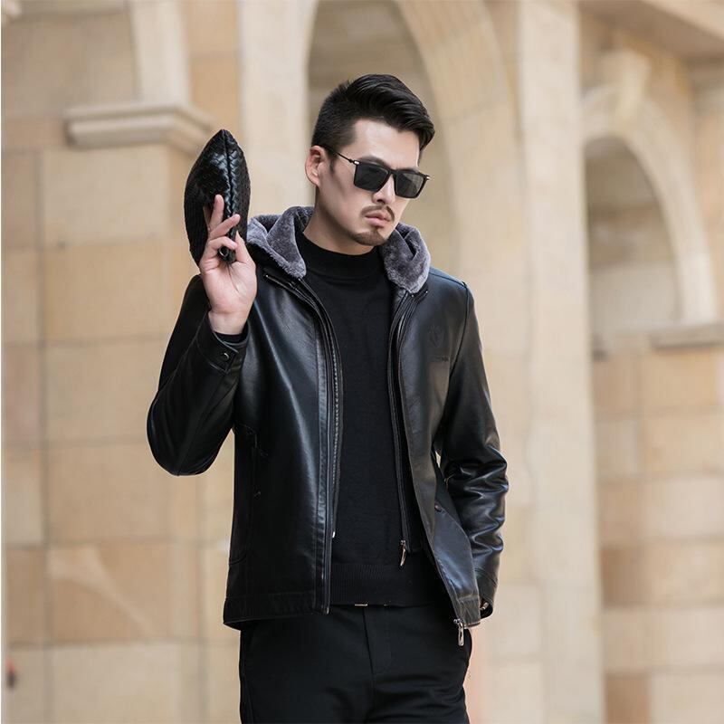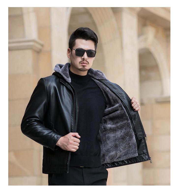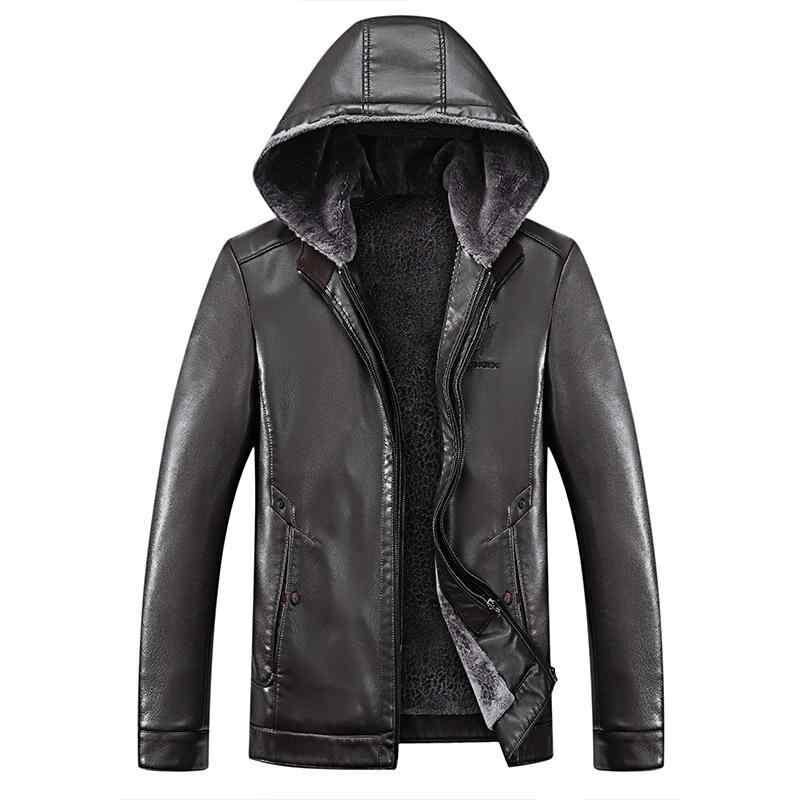 レザージャケット メンズ PUレザー フェイクレザー 裏ボア 厚手 冬用 防寒 保温 アウター ブルゾン 上着 取り外し可能フード ファー付き ジップアップ スタンドカラー カジュアル スリムフィット ブラウン ブラック