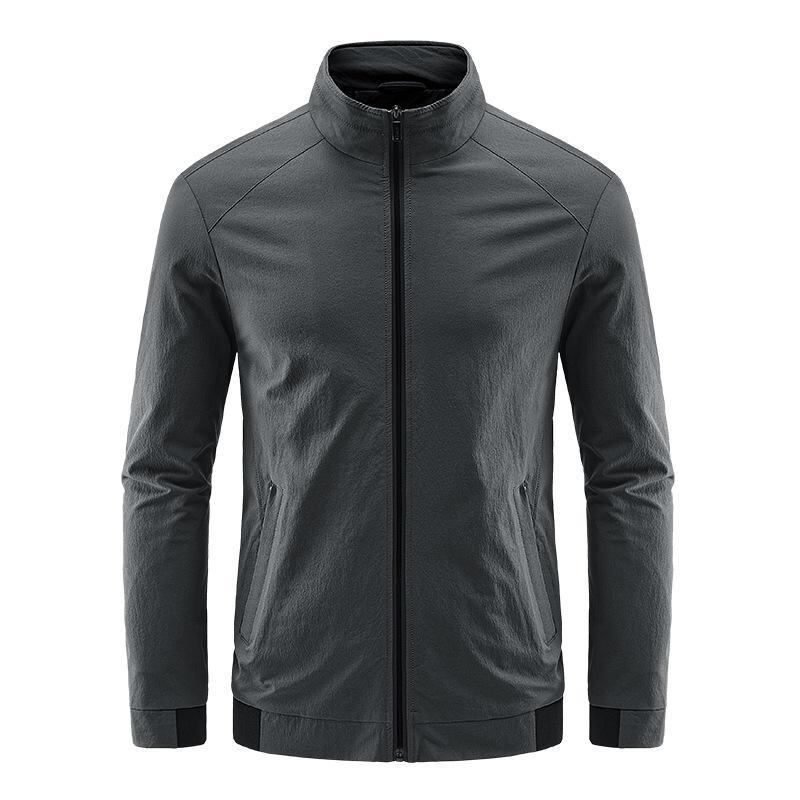 ジャケット メンズ 春秋 スタンドカラー 防風 ブルゾン ゆったり ルーズフィット カジュアル ビジネス 通勤 普段使い 薄手 長袖 ナイロン ジップポケット 男性用 黒 紺 灰色