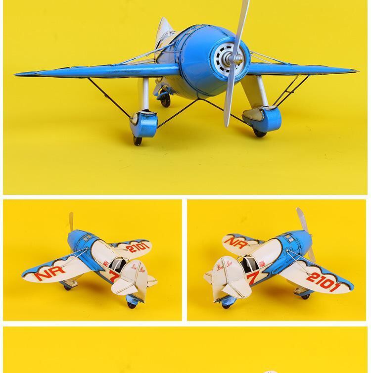 飛行機模型 レトロ ブリキ 第二次世界大戦 オブジェ アメリカンヴィンテージ おしゃれ インテリア 置物 ホームデコレーション ZAKKA 雑貨 撮影用小道具 店舗ディスプレイ 鉄製 メタル イエロー ブルー レッド