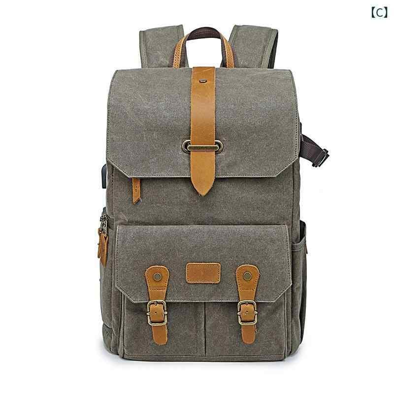 カメラバッグ 男女兼用 撮影用 一眼レフ ミラーレス対応 バックパック リュックサック USBポート付き 帆布製 防水 防犯 耐衝撃 クッションパッド入りショルダーベルト カーキ ダークグレー アーミーグリーン