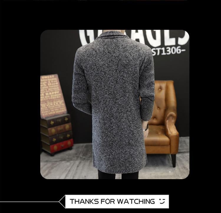 ニットカーディガン メンズ 男性用 ミドル丈 スリムフィット 韓国風 襟付き 厚手 配色デザイン 綿混 アクリル 長袖 カジュアル 普段使い アウター 秋冬物 カーキ グレー グリーン トレンド 個性的