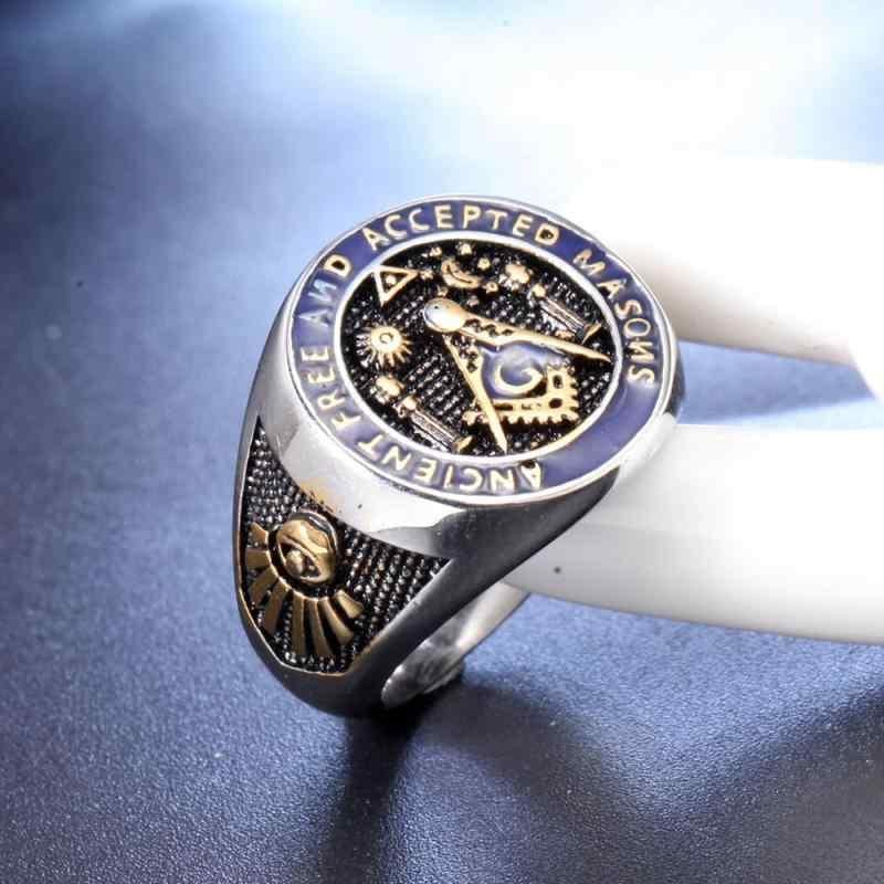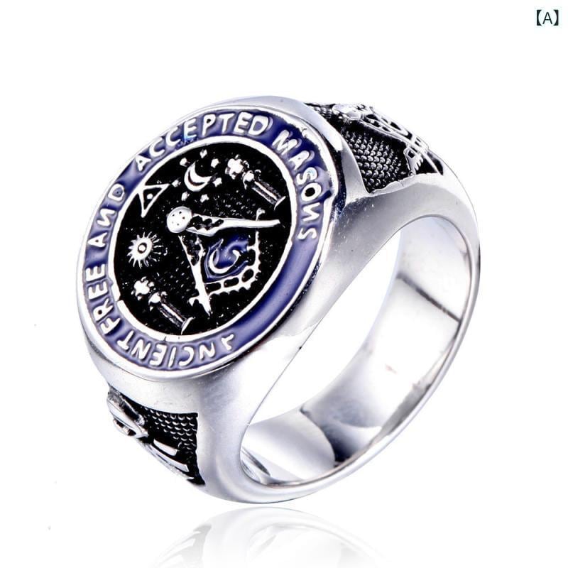 リング メンズ 男性用 フリーメイソン スカル ドクロ チタン鋼 サージカルステンレス 指輪 個性的 レトロ クラシック ヴィンテージ アンティーク 幾何学模様 ジオメトリック シルバー ゴールド ツートン バイカラー 普段使い カジュアル ストリート