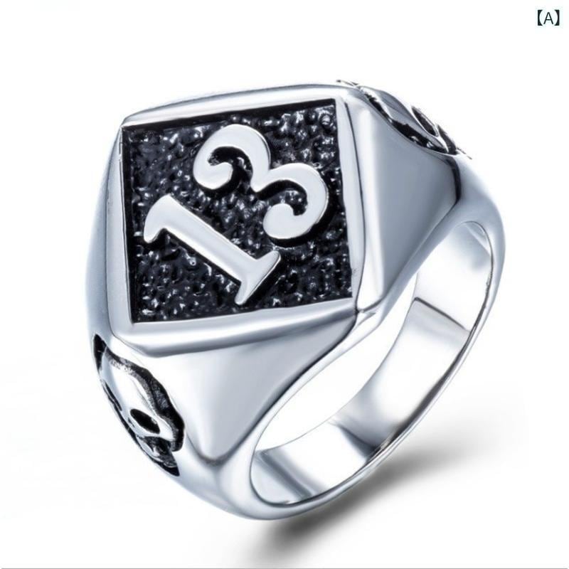 リング メンズ パンク ロックテイスト スカル ドクロ 合金 指輪 数字13 ゴールド シルバー クール ハード 個性派 ストリート カジュアル ファッション アクセサリー