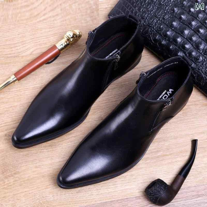 ブーツ メンズ 革靴 ショートブーツ ワークブーツ ポインテッドトゥ ミドルカット 本革 レザー ビジネス フォーマル 紳士靴 ドレスシューズ クッション性 衝撃吸収 欧風 ブラック レッドブラウン ブルー エナメル