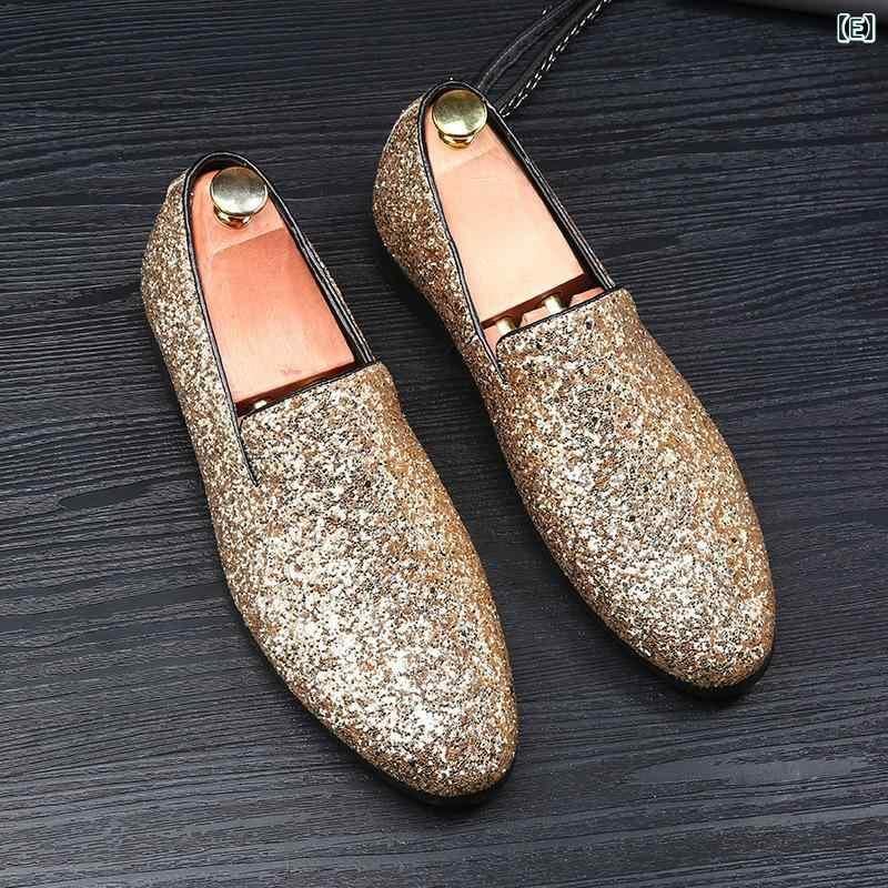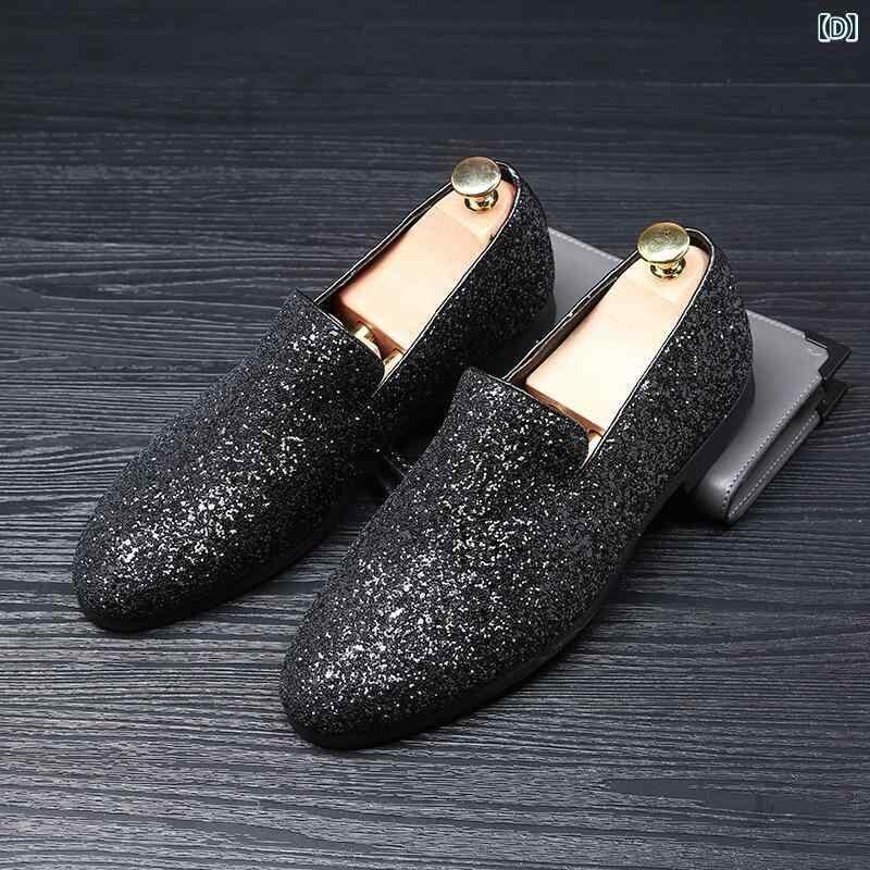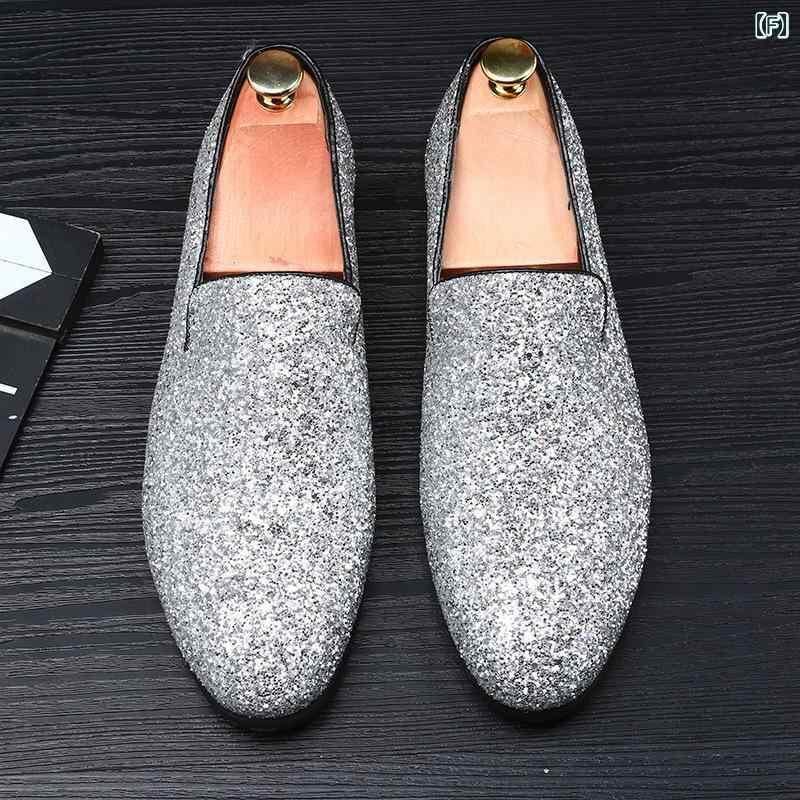 シューズ メンズ ドライビングシューズ モカシン ブリティッシュ 韓国風スタイル ポインテッドトゥ 尖り 革靴 レザー スリッポン スパンコール グリッター 通気性 浅履き フラットヒール 大きいサイズ デイリーユース オールシーズン対応