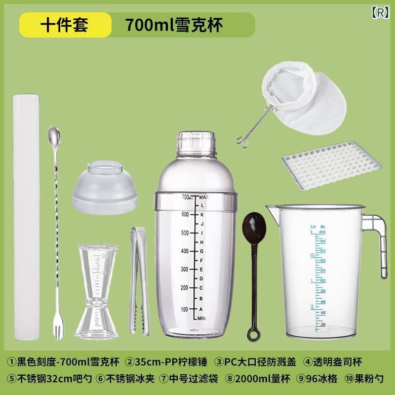 シェイカー 目盛り付き 手動 プラスチック製 シェーカーボトル カクテルシェーカー ミルクティー ドリンクミキサー 飲料調合 業務用 家庭用 バー カフェ シェーカーセット