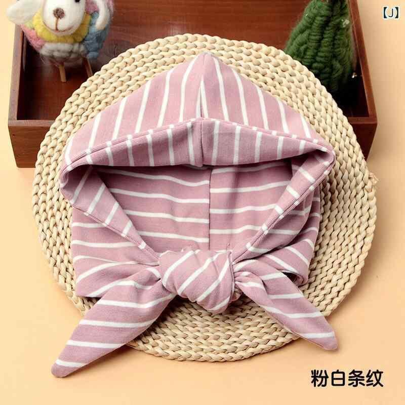 ニット帽 ベビー キッズ 男の子 女の子 ストライプ柄 韓国風 秋冬用 綿 コットン 一体型 耳あて付き 無地 暖かい 防寒 防風 アウトドア お出かけ 通園 通学 かわいい