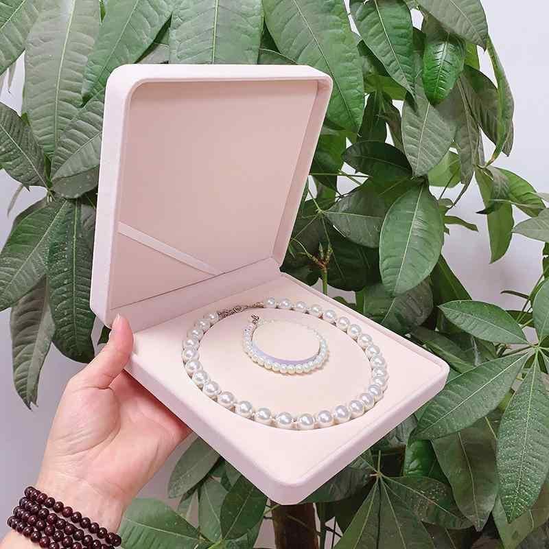 ジュエリーボックス ベロア調 パール ネックレス イヤリング ブレスレット 3点セット セットケース ギフトボックス アクセサリー収納 プレゼント おしゃれ 高級感 アイボリー ワインレッド スクエア