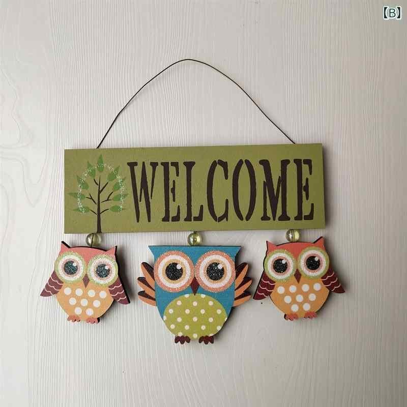 壁掛け フクロウ カントリー風 インテリア雑貨 ようこそボード ウェルカムボード 店舗用 玄関 リビング ウォールデコレーション 個性的 ユニーク おしゃれ かわいい MDF 木製 白 緑 青