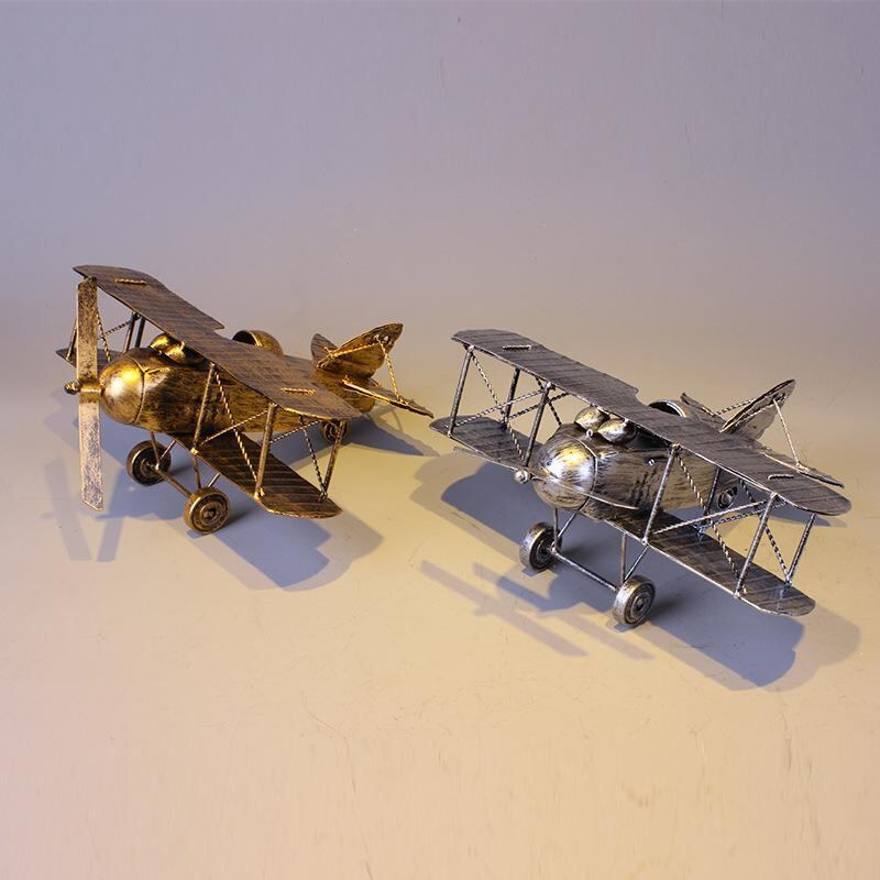 インテリア 置物 鉄製 大型 飛行機モデル アメリカン レトロ ヴィンテージ加工 戦闘機 オブジェ ゴールド シルバー 航空機 工芸品