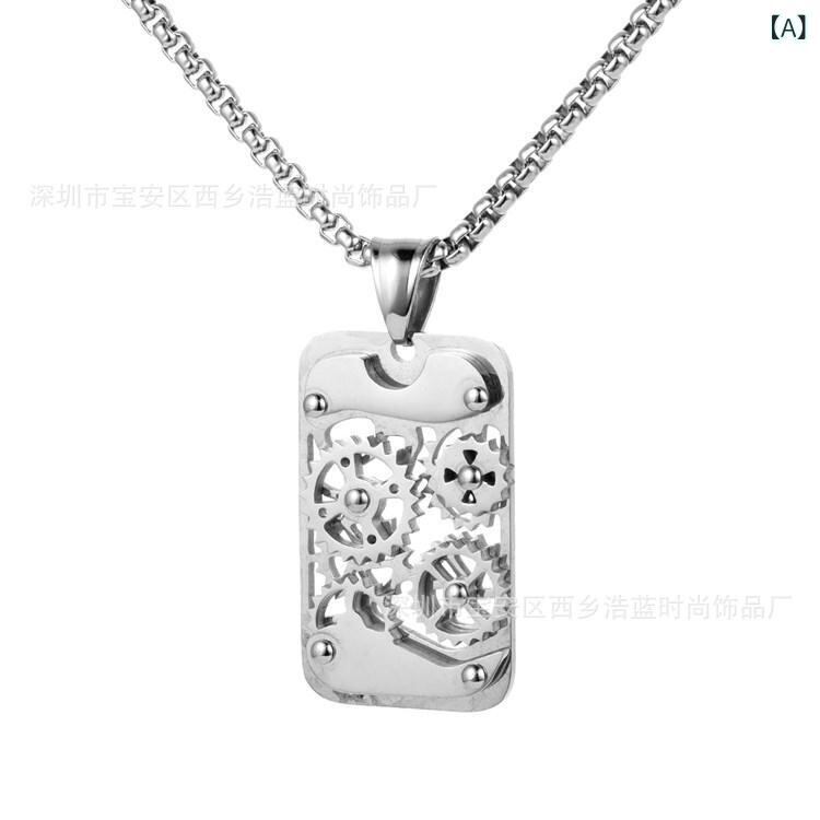 ネックレス チタン合金 メカニカルギア ペンダント スチームパンクデザイン ラッキーアイテム スクエア 個性的 クール 研磨 光沢仕上げ シルバー ゴールド ツートンカラー