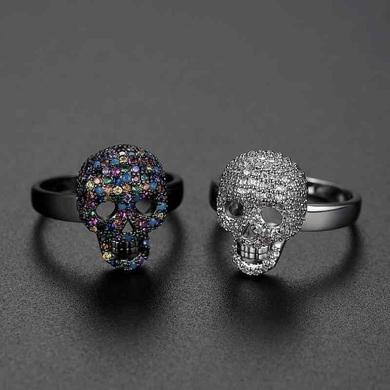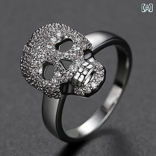 リング メンズ スカル ドクロ パンク ヒップホップ ストリート ロック ファッション 個性的 存在感 銅 ジルコニア 欧米風 指輪 男性用 アクセサリー カジュアル 普段使い ゴツめ