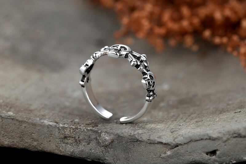 リング レディース スカルモチーフ レトロ エスニック フェイクタイシルバー サイズ調整可能 銅製 白銅 アンティーク風 おしゃれ 上品 個性派 カジュアル 普段使い