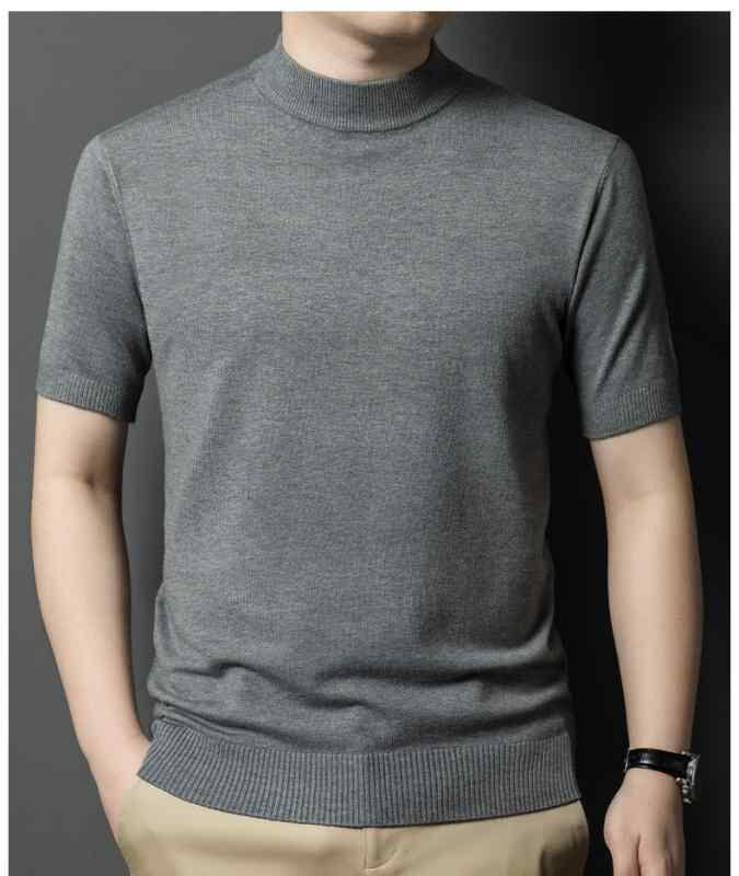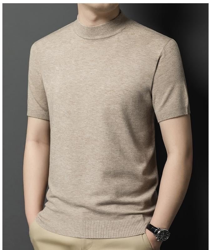 ニット メンズ 男性用 半袖 モックネック 羊毛混 ウォッシャブル スリムフィット セーター インナー トップス 秋冬 ビジネス カジュアル 通勤 オフィス 普段使い デイリー 着回し 若者向け