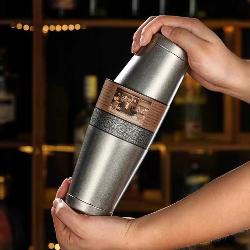 カクテルシェーカー ステンレス製 ボストンシェーカー ジャパニーズシェーカー チャップリン 天使 デザイン アンティーク加工 ヴィンテージ レトロ 光沢仕上げ プロ仕様 バーテンダー ホームバー カクテル用品 バーツール