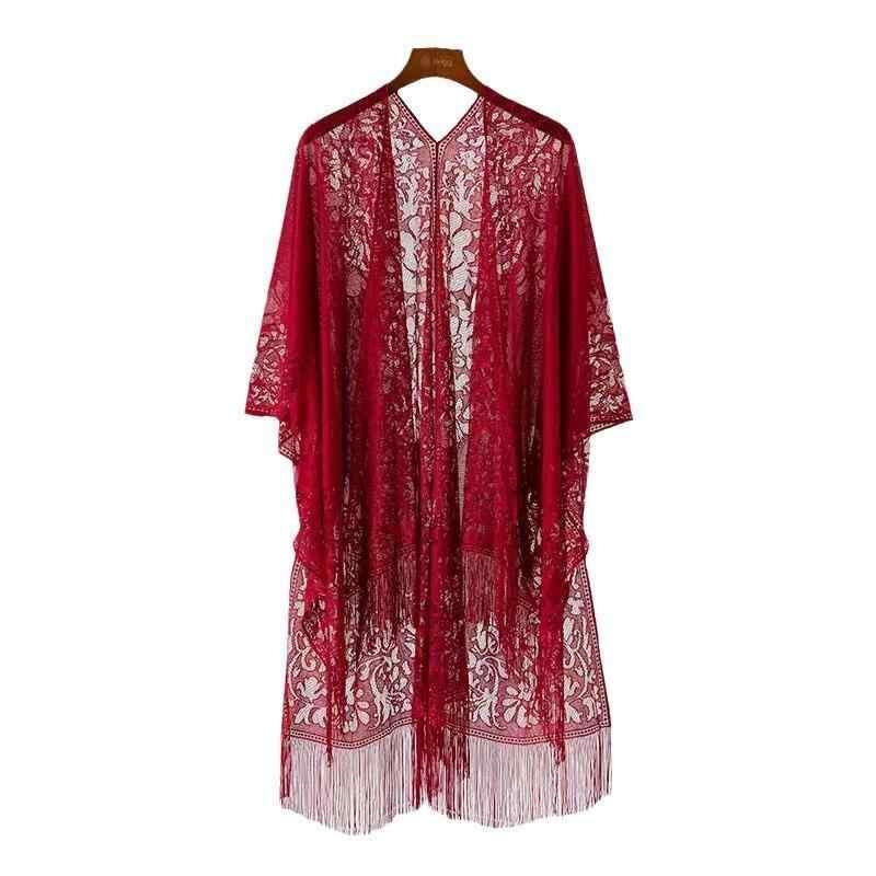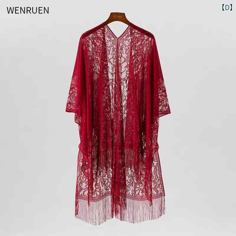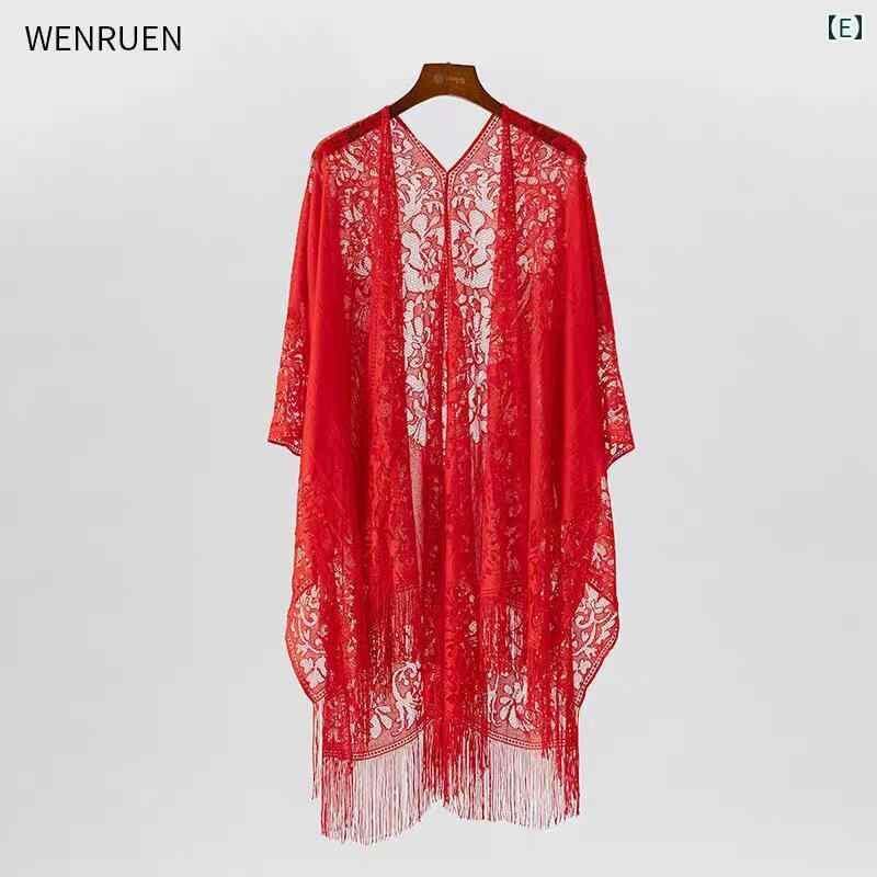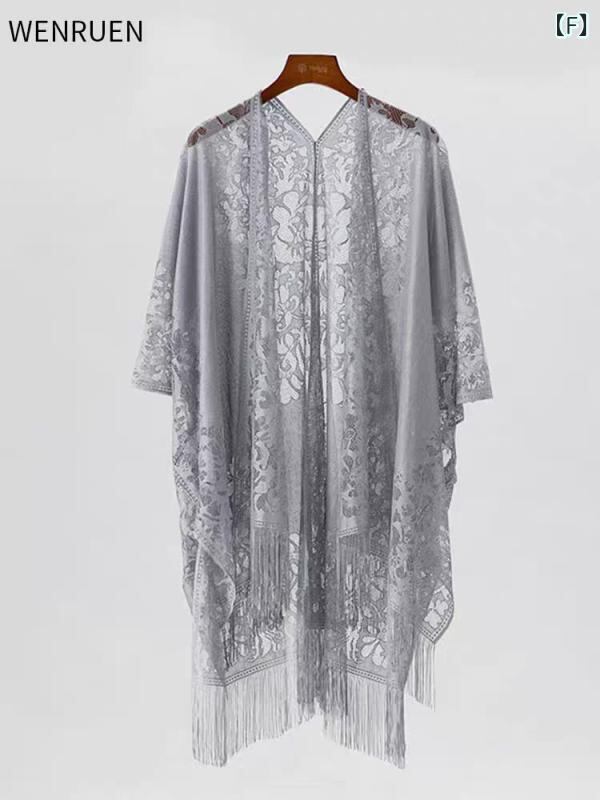 ショール レディース レース メッシュ フリンジ ポンチョ ケープ カーディガン 羽織り 春 秋 レトロ エスニック 万能 エレガント ポリエステル素材 ロング丈 保温性 刺繍 無地 ブラック ホワイト ベージュ