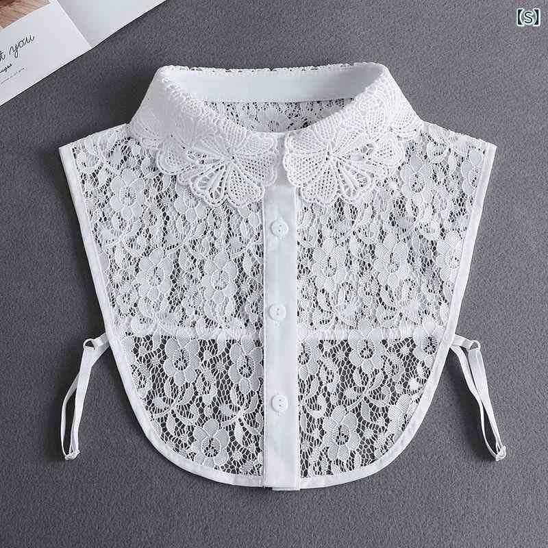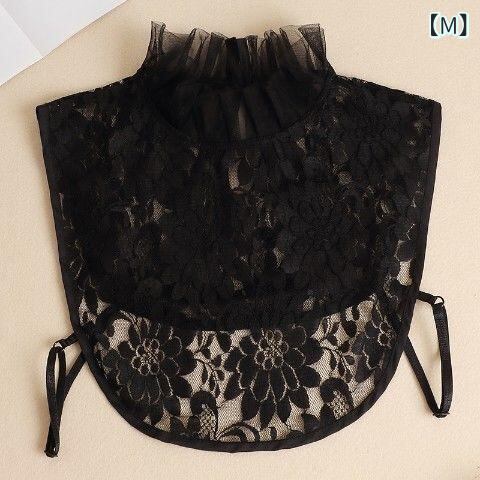 付け襟 レディース 女性用 レース ハイネック タートルネック 通気性 重ね着 フェイクカラー スタンドカラー 丸襟 プリーツ フリル クロシェ編み ジャガード チェック柄 ホワイト ブラック モノトーン