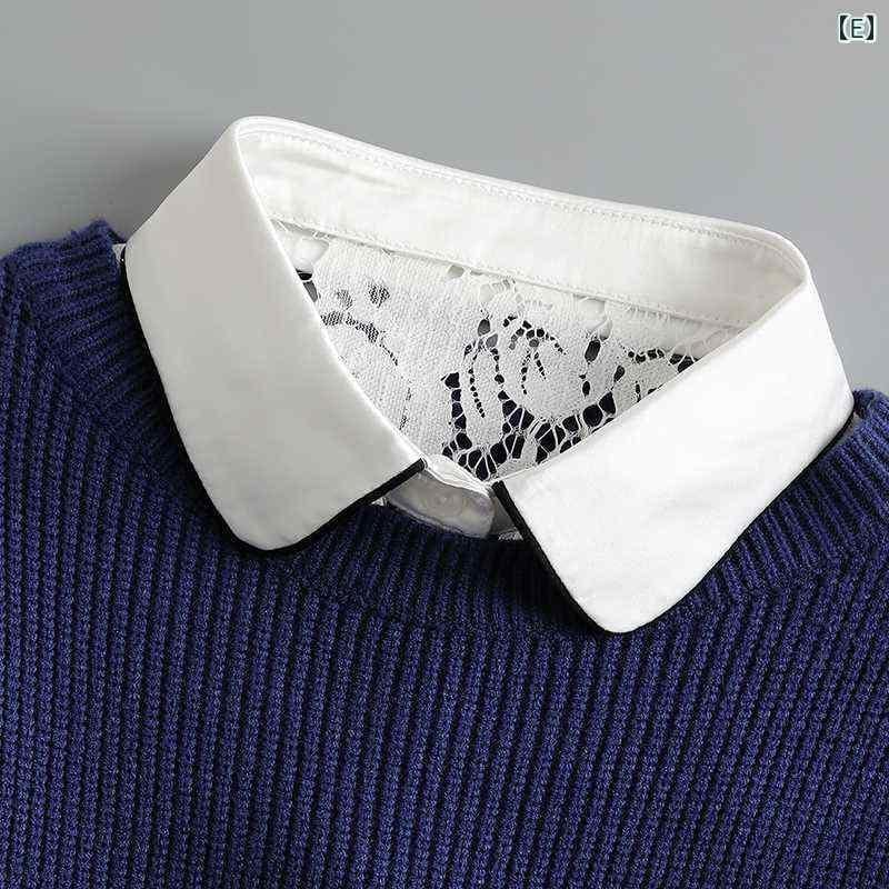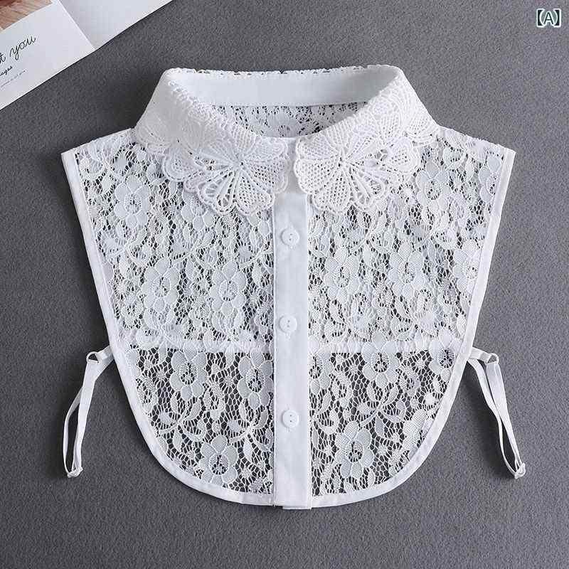 付け襟 レディース 女性用 フェイクシャツ襟 フリル レース シフォン素材 スタンドカラー 立ち襟 丸襟 ポインテッドカラー ウェーブカラー フラワーレース チェック柄 ブラウス ニット セーター インナー オールシーズン 春 秋 冬 白 黒