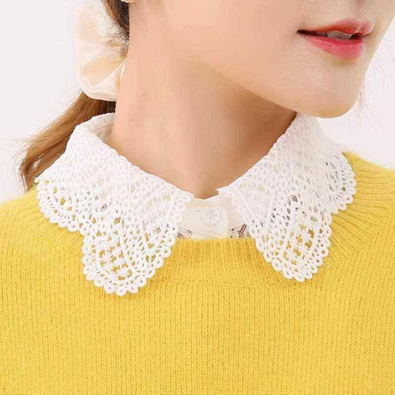 付け襟 レース 白 韓国風 オルチャン ファッション 秋冬物 シャツ ブラウス ニット 重ね着スタイル フォーマル カジュアル 小物 飾り シャツカラー フリル襟 フラワーレース フェイクカラー