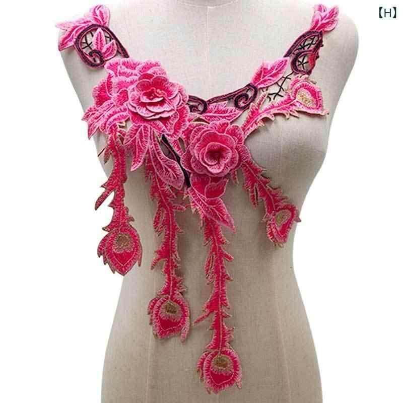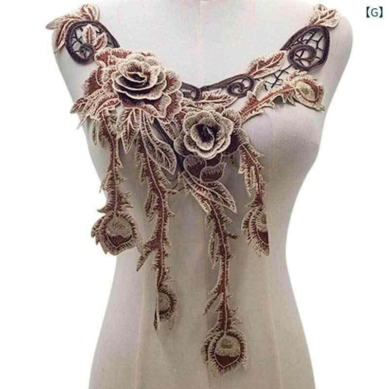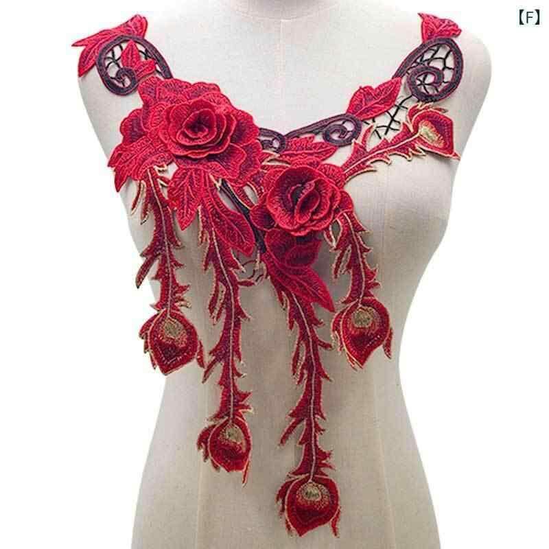 付け襟 レディース カラフル刺繍 水溶性レース 透かし彫り 3D立体巻き花 民族風 エスニック 胸元飾り コサージュ ブローチ ポリエステル フォーマル ドレス ファッション小物 手芸 DIY ママコーデ エレガント 上品 華やか