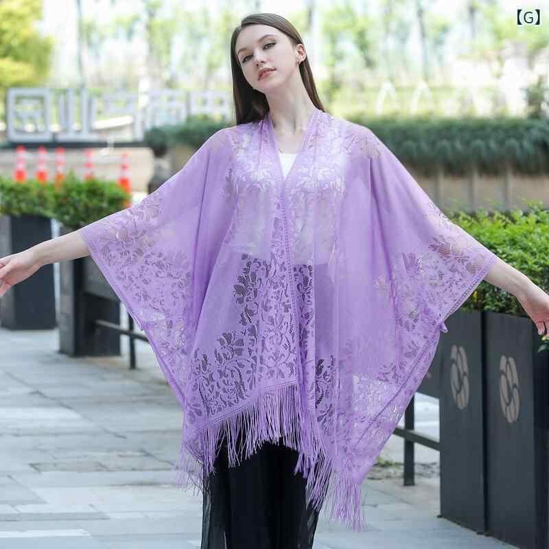 ストール レディース 透かし編み レース フリンジ カーディガン 羽織り 大判 ショール UVカット 紫外線対策 パーティー 結婚式 二次会 フォーマル ドレス リゾート ビーチ 旅行 夏 冷房対策 薄手 ポリエステル 花柄 黒 白