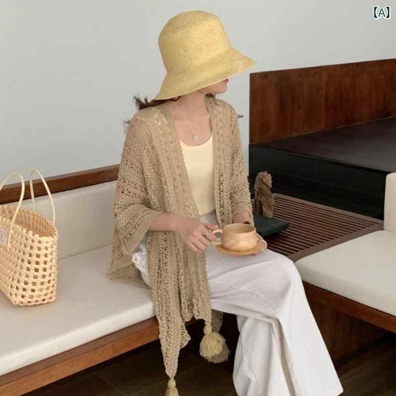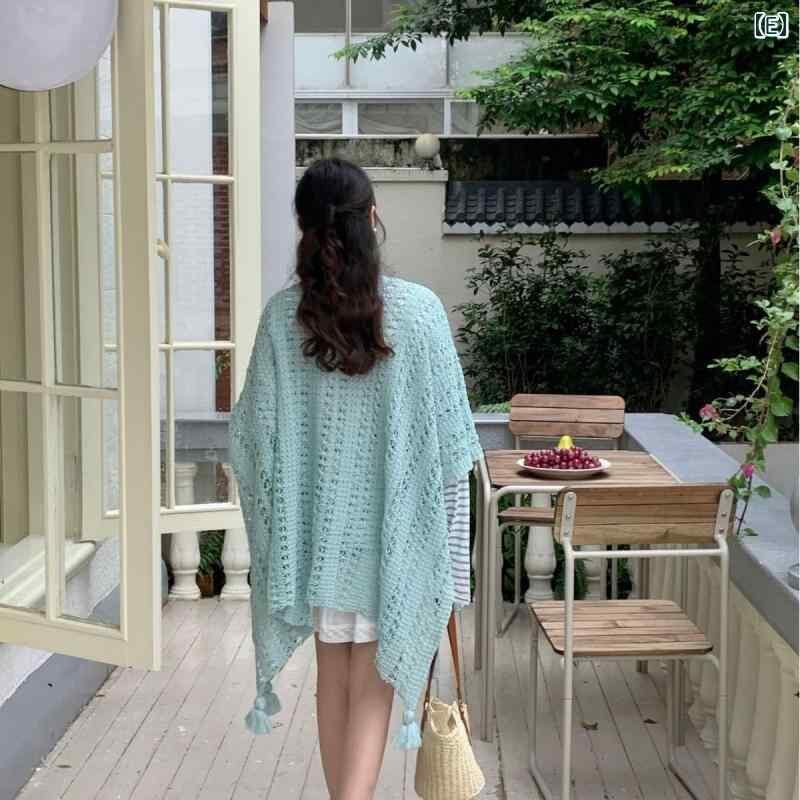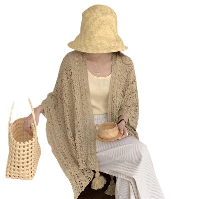 ショール レディース UVカット 接触冷感 薄手 軽量 無地 透かし編み メッシュ スリット タッセル 韓国風 旅行 春 夏 秋 羽織り ストール ポンチョ ポリエステル