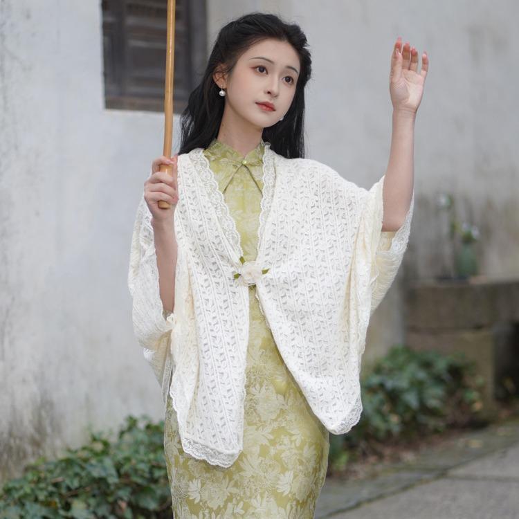 ・カラー展開: レースベージュ、ワインレッド、オフホワイト、透かし編みベージュ、パールタッセル雲肩、ホワイト