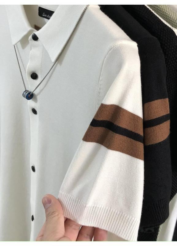 半袖ポロシャツ メンズ ストライプ柄 スリムフィット ストレッチ 薄手 接触冷感 通気性 ポリエステル素材 開襟 きれいめカジュアル 着回し デイリーユース