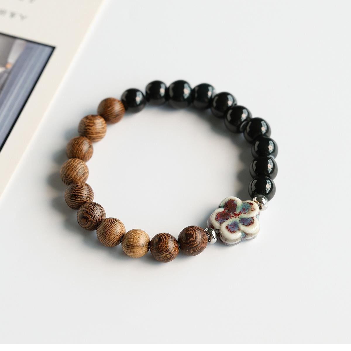 ブレスレット 男女兼用 ペア 景徳鎮 陶器ビーズ 鶏翅木 ウッドビーズ 編み込み エスニック 新中華風 オリエンタル モダンテイスト アクセサリー