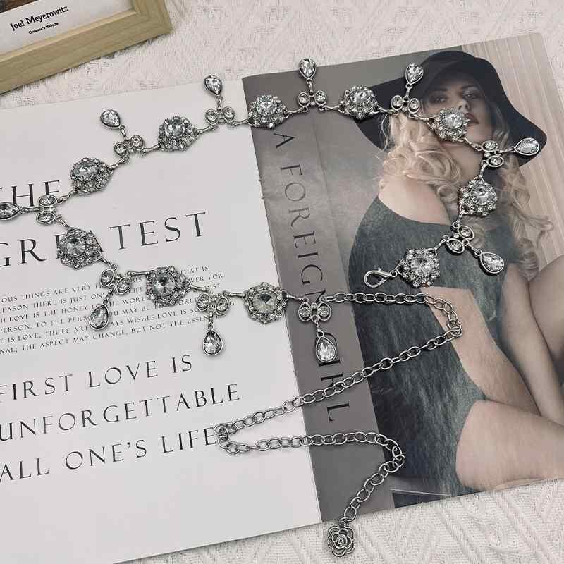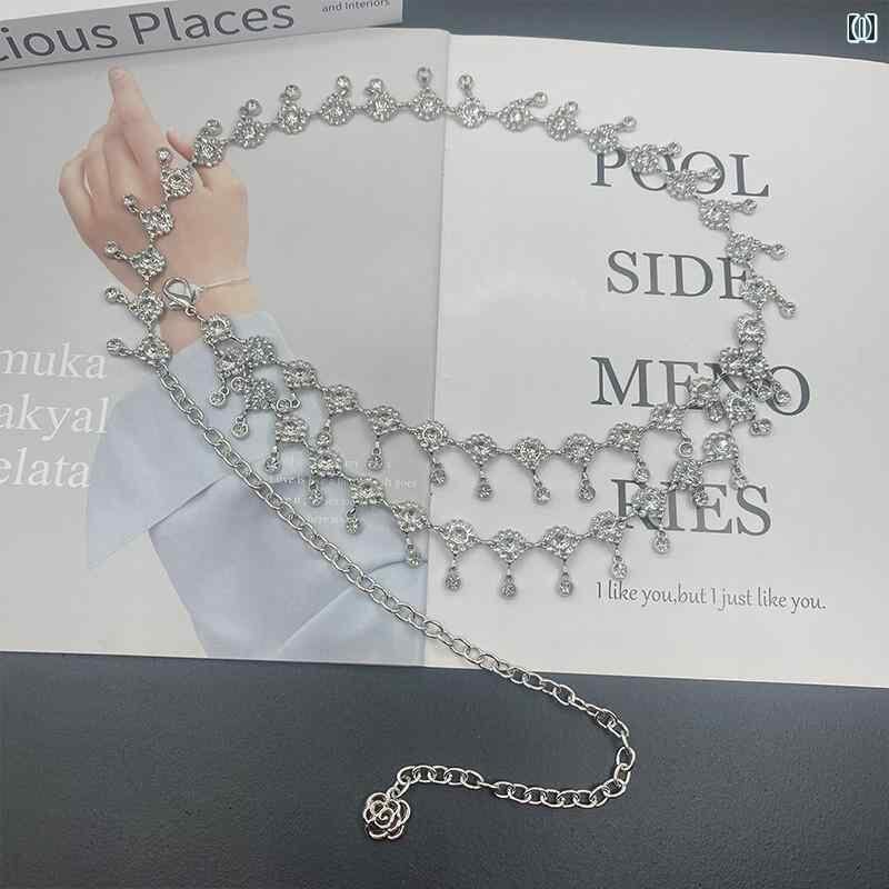 ・カテゴリ: ウエストチェーン・性別: レディース・素材: 金属・特徴: ラインストーン装飾・カラー展開: シルバー、シルバー(ホワイト)、シルバー(パープル)、シルバー(ピンク)、シルバー(グレーラインストーン)、シルバー(ホワイトラインストーン)・スタイル: エレガント・ベルトのタイプ: シングルループ・長さ: 約105cm・幅: 約2cm・留め具: フック式