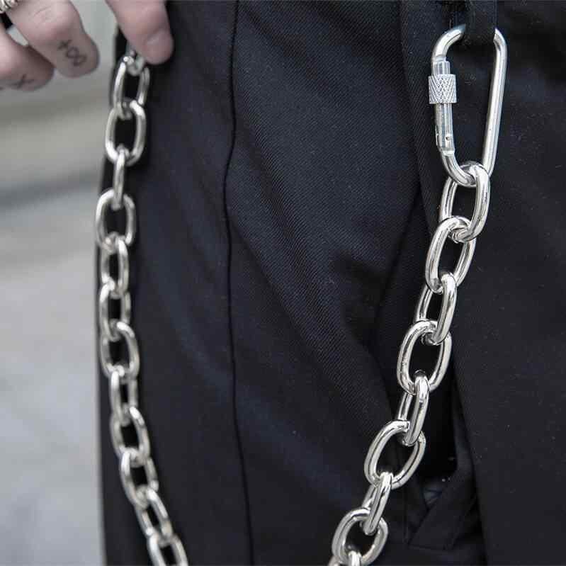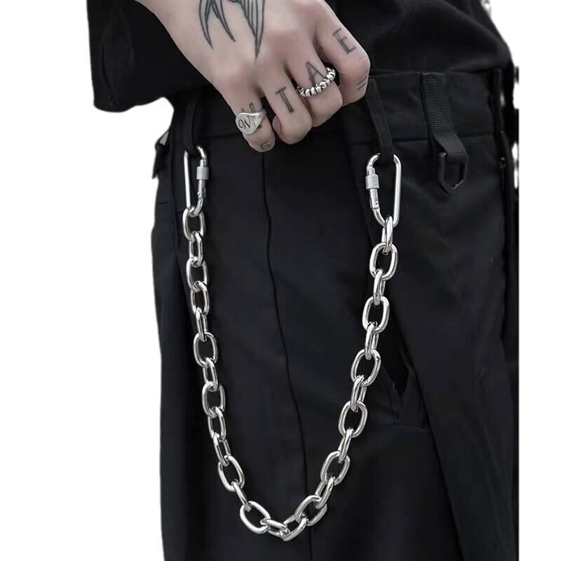 ウエストチェーン ユニセックス シンプル 太めチェーン パンツチェーン カラビナ メタル製 シルバーカラー おしゃれ ギャル系 トレンド アクセサリー