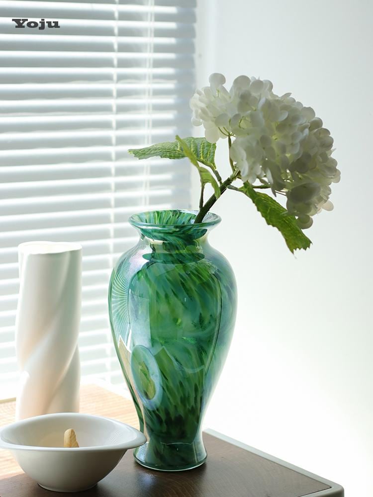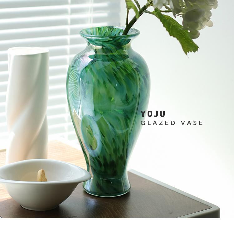 フラワーベース 瑠璃 ガラス 手吹き 新中式 レトロ ヴィンテージ 高級感 アート オブジェ 食卓 ダイニング 民宿 インテリア装飾 水栽培 ピンク系 ブルー系