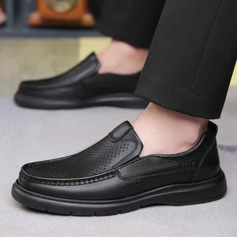 メンズサンダル 男性用 夏用 パンチング 通気性 蒸れにくい ソフトソール 軽量 スリッポン ビジネスカジュアル 普段使い ドライビングシューズ 本革 牛革 革靴 ラウンドトゥ ブラック ブラウン