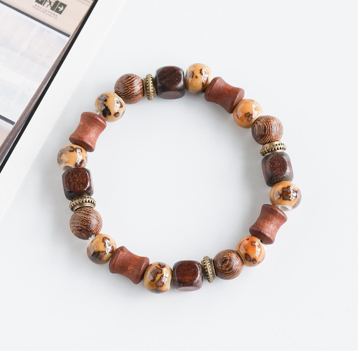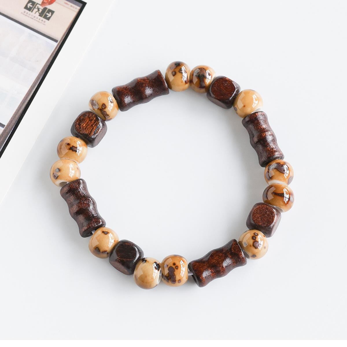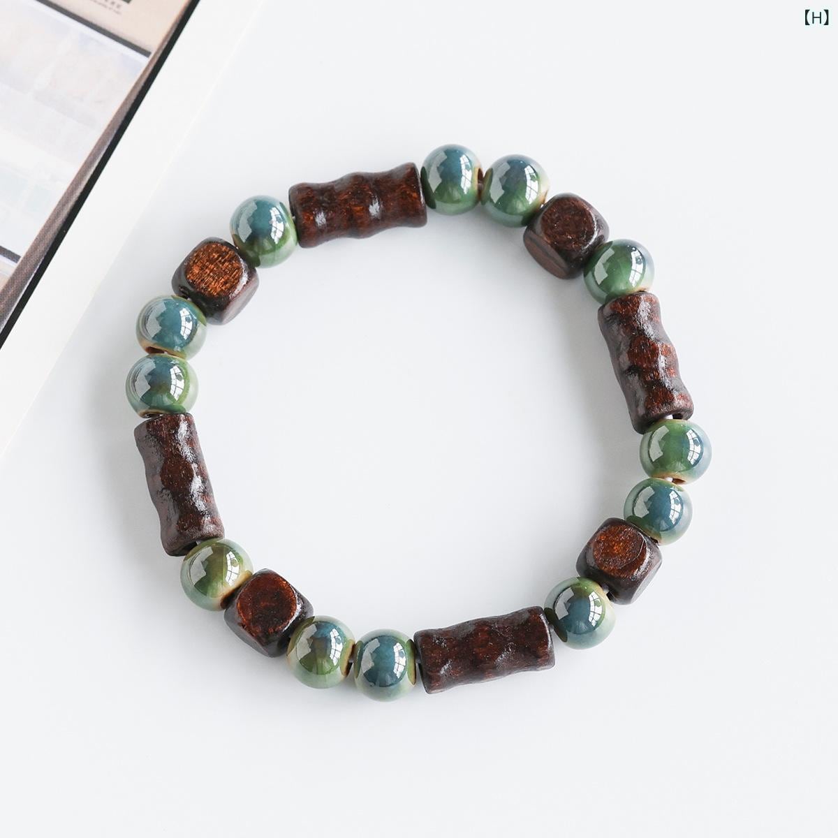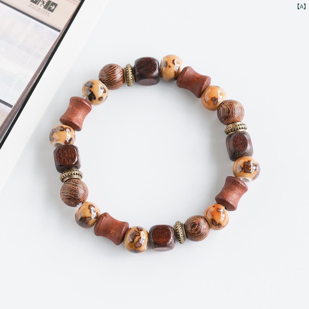 ブレスレット 男女兼用 ユニセックス 新中華風 エスニック 景徳鎮 陶磁器 ビーズ 木製 編み込み 数珠 カップル ペア 学生 普段使い アクセサリー