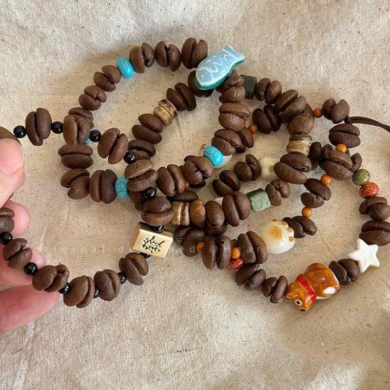 ビーズブレスレット レディース コーヒー豆 肉球 犬 動物モチーフ 木製 ハンドメイド 個性的 デザイン 高級感 伸縮性 カップル 友達 普段使い