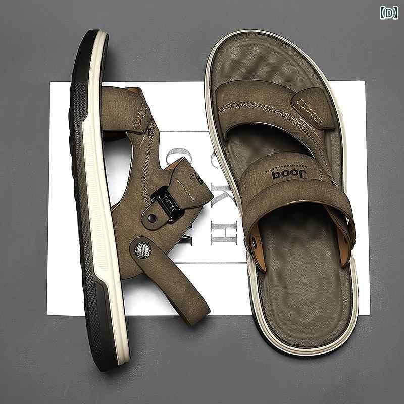 サンダル メンズ 男性用 スライドサンダル マイクロファイバーレザー 厚底 クッション性 ビーチ スポーツ 外履き ドライビング 通気性 ラバーソール レザーライニング カジュアル 普段使い リゾート 水陸両用 グレー ブラック ブラウン