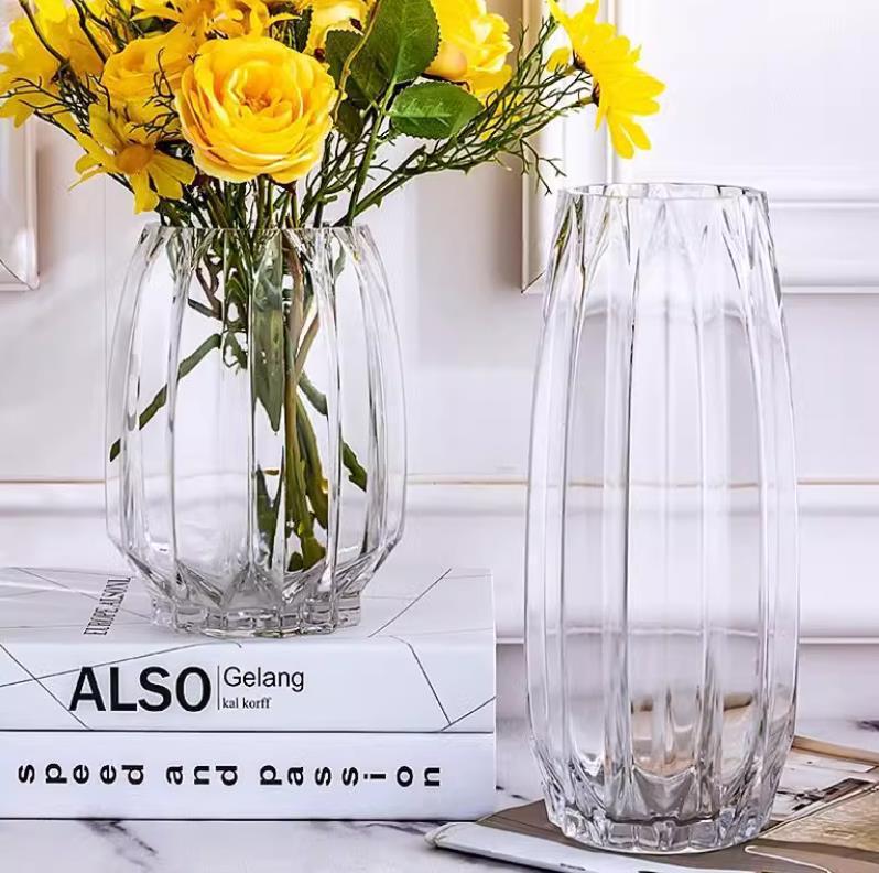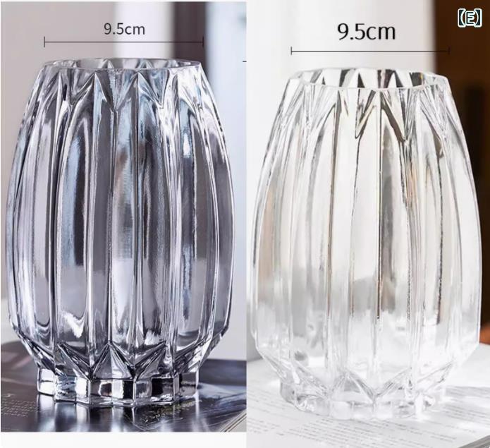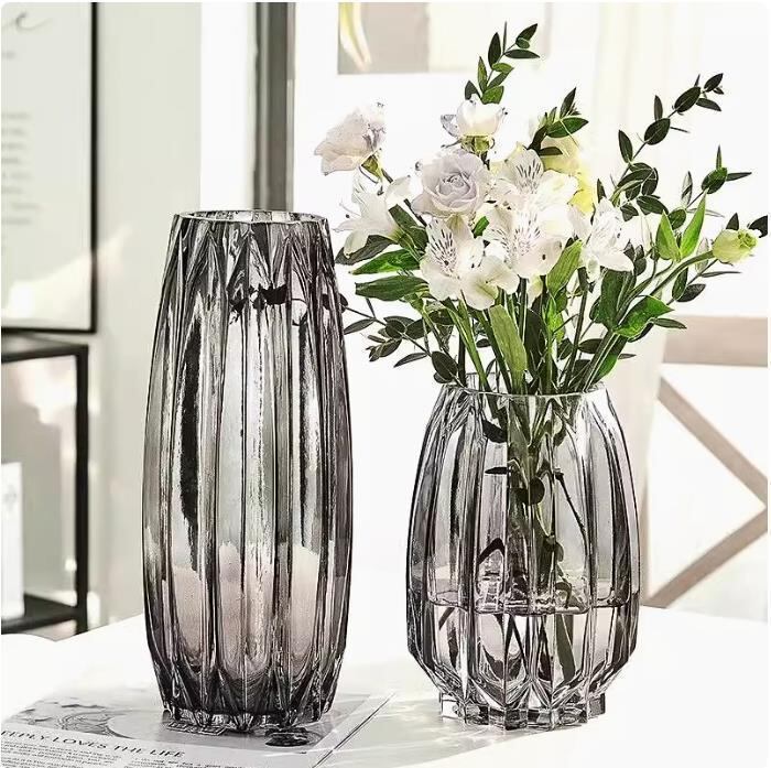 花瓶 北欧風 ヨーロピアン 軽やか 高級感 ガラス製 透明 スモーキーグレー カラー装飾 リブデザイン リビング 生け花 水栽培用 インテリア オブジェ 置物